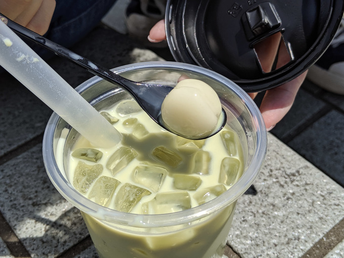 白玉は冷えると固くなるイメージがありますが、冷たいミルクティーの中に入っていたのにもちもちでした。