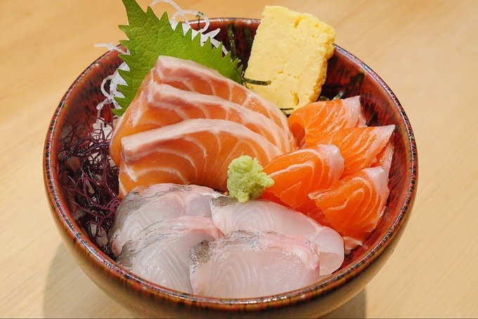 海鮮丼とお茶漬け、どちらも楽しめて、コスパがとても良いサーモン丼!