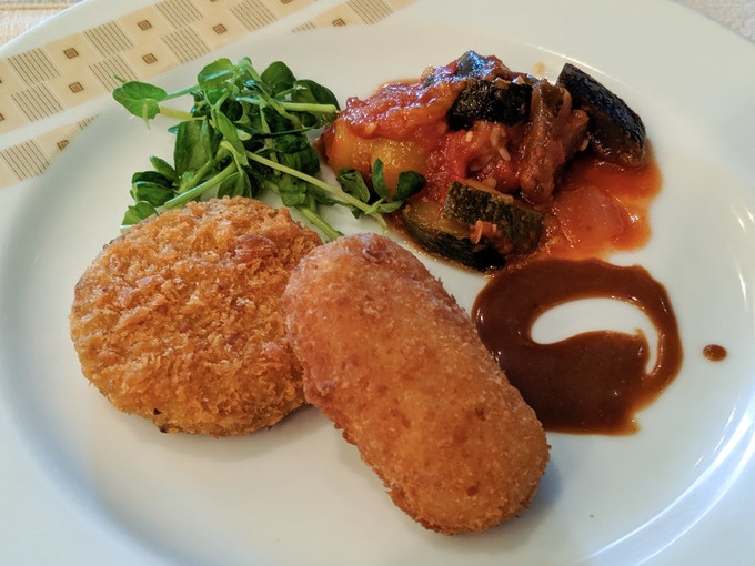 バイキングの豪華メンバーの中では脇役ながら気に入ったメンチカツとクリームコロッケをお替りと、もりもりお皿を重ねました。