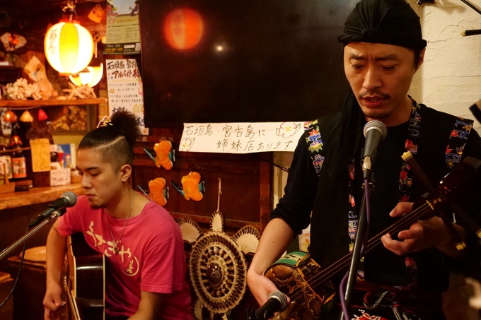 お店のスタッフが、三線&ギター片手に沖縄の曲を弾き語りしてくれます。