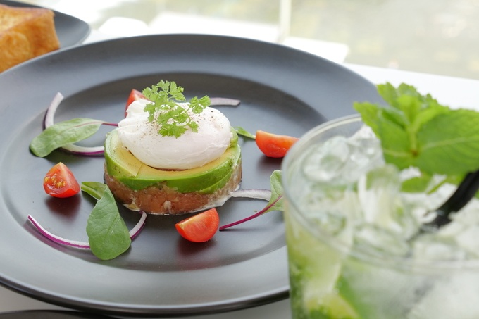 サーモンのピンク、アボカドのグリーン、ポーチドエッグの白のコントラストが美しい、見た目にも華やかな一品です。