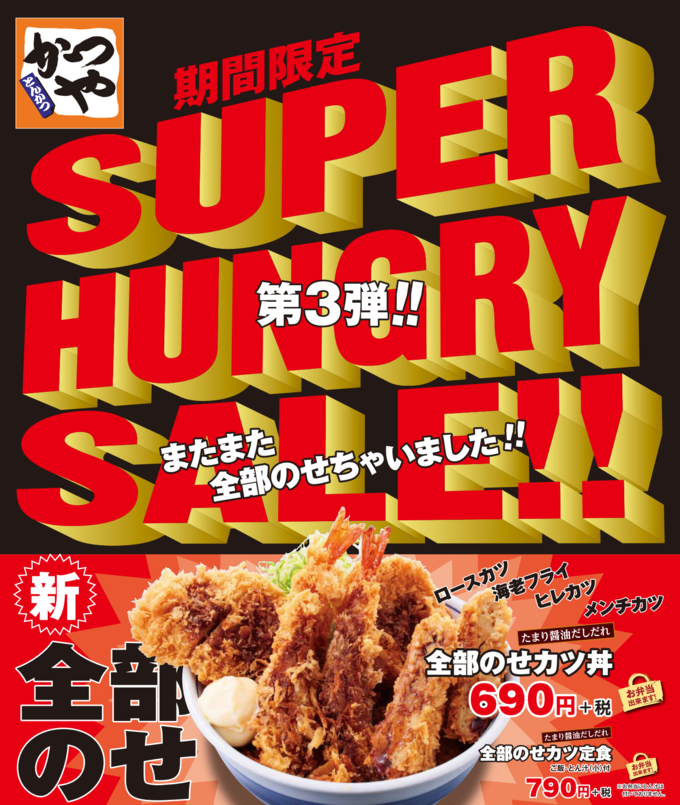 全国の『かつや』では期間限定で、"SUPER HUNGRY SALE"第3弾を開催中!
