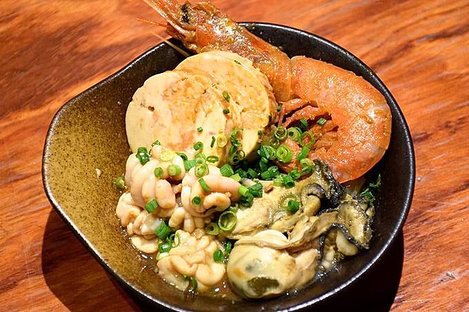 3列に並んだあん肝はもちろんのこと、鍋からはみ出さんばかりに盛られた牡蠣やイカも忘れてはいけません。