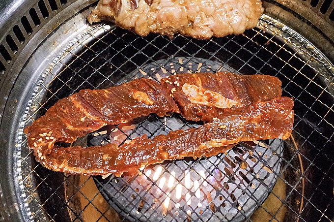 ちなみに、網の端の方にチラチラ見えているのは「きんぐカルビ」。あえて火から離すことで、じっくり焼いているんです。