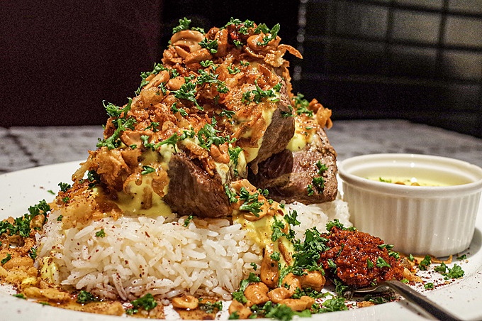 ソテーしたラム肉を、故郷から取り寄せたスパイスとともに煮ること6時間。ほろほろになったラム肉とピラフに、ヨーグルトソースをかけまわしていただく。
