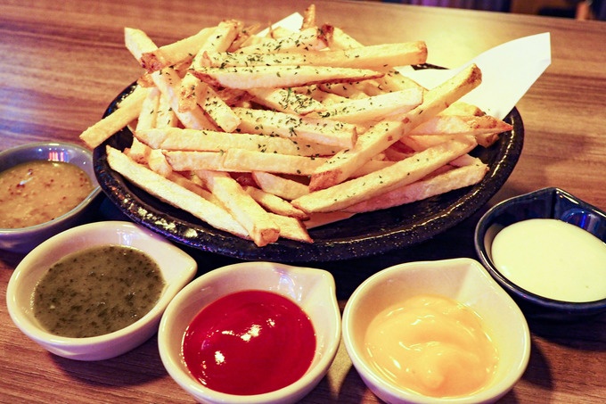 豆腐で一杯やったところで、小腹がすいたので、『写楽』名物の「5種ソースのポテトフライ」を追加。