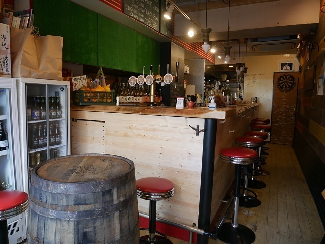L字カウンターをメインに、DIYでウッディな雰囲気に仕上げた店内。会計はキャッシュオン制