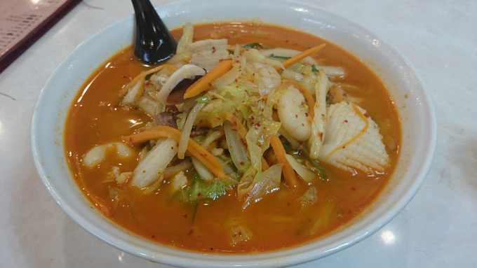 コウイカを初めとした魚介類がたっぷり入った北京式ちゃんぽん麺は、魚介類のぷりぷり食感にまず感動を覚えました!