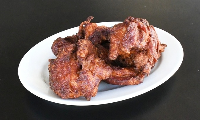 醤油と数種類の調味料を組み合わせた秘伝の漬け込みダレで味付けした「黒唐揚」。