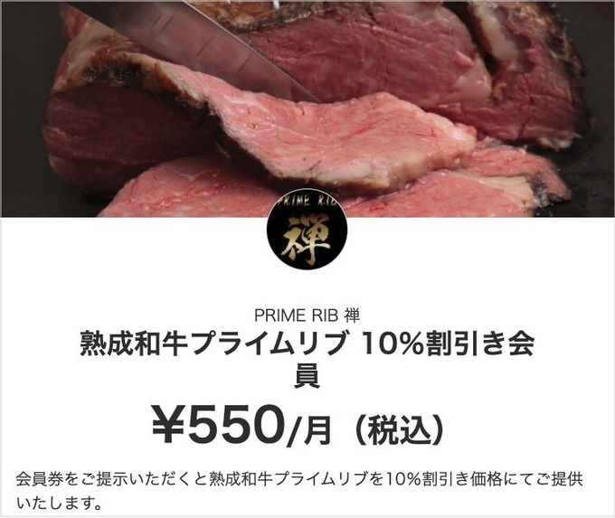 非常にお得な『PRIME RIB 禅』のサブスク会員券