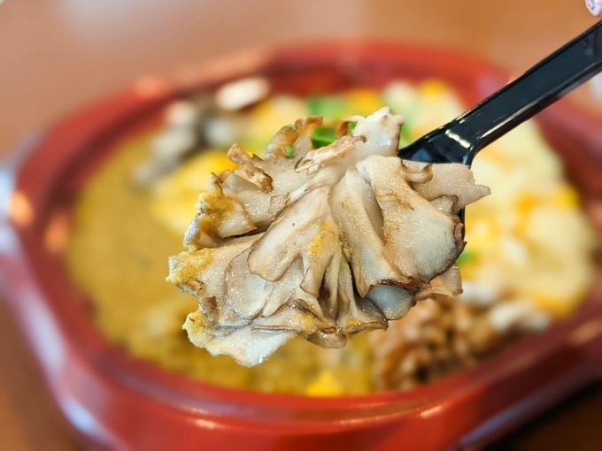 食べ進めていくとキノコや昆布を組み合わせた出汁、飴色まで炒めた玉ねぎの奥深い旨味やコクが出現!