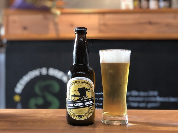原料にお米を使うとすっきりした味わいになるのはラガー造りの常套手段ですが、『Session's Brewery』ではさらにひと捻りして、お米を昔懐かしいポン菓子にしてから使用。ポン菓子の香ばしさと甘い香りがしっかりと感じられつつも、クリアな苦味とシャープなのど越しのすっきりした味わいに仕上がっています。