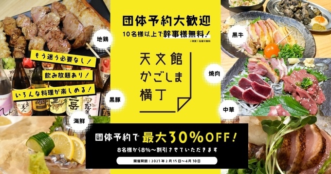 歓送迎会やるなら『天文館かごしま横丁』で!人数割引キャンペーンで最大30%オフ [PR]