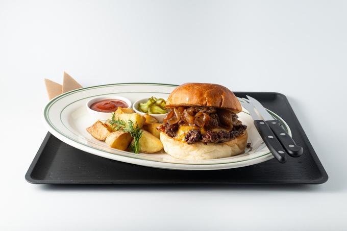 『BOCCHAN キッチン』では、まるでステーキのように肉々しいグルメバーガーが楽しめます。