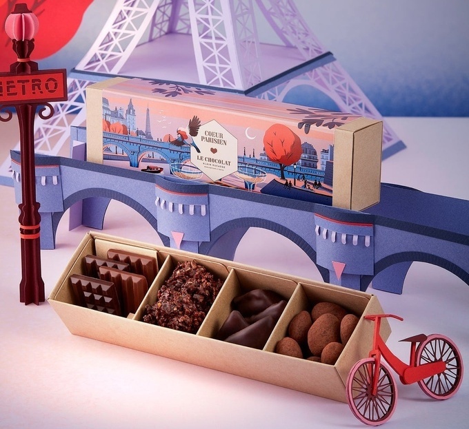 フランス・パリ発のショコラ専門店。2026年のテーマ「パリのときめき」を表現した、手作りならではの繊細なショコラが並びます。