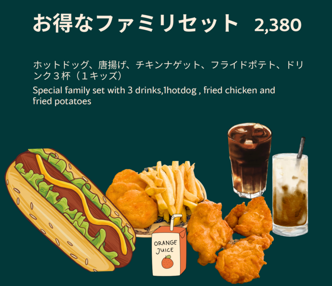 新メニュー③:ファミリーでのランチに!お得なセットメニュー