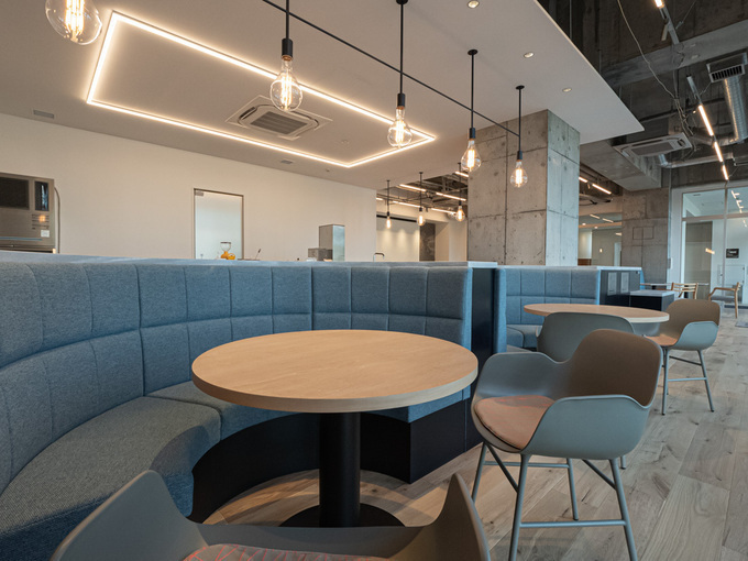 なかでも扇型のソファ席は、グループで過ごすのにぴったり。