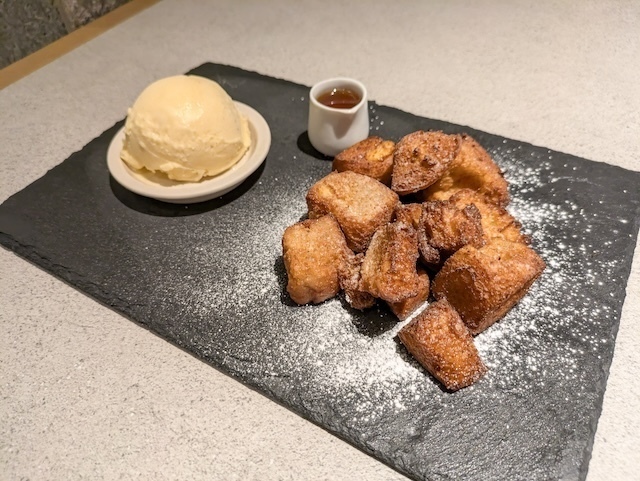 食後のデザートは、美しいきつね色に焼き上げられた『BRISK STAND』の「フレンチトースト」。外はこんがりサクサク、中は卵とミルクたっぷりのジュワッと食感。