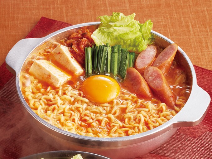 「旨辛スープのキムチチゲ定食(サリ麺入り)」878円(税込)