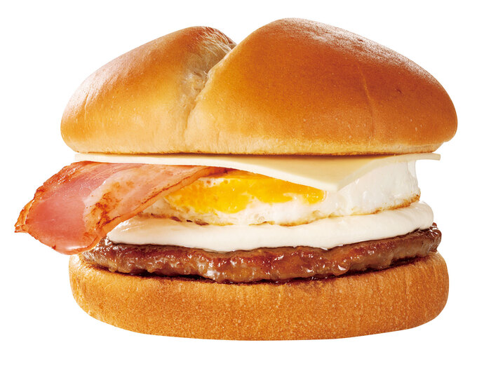 「Wクリームチーズベーコンエッグバーガー」をJr.サイズにアレンジ。ふわふわのたまご、スモーキーなベーコン、爽やかな2種類のクリームチーズのバランスが楽しめます。