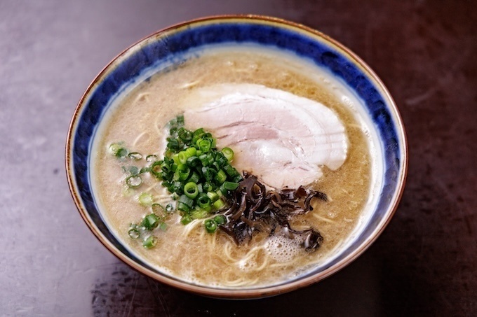 看板メニューは「博多豚骨ラーメン」。長時間煮込んだ豚骨スープは、旨味が凝縮したクリーミーな味わいが自慢です。