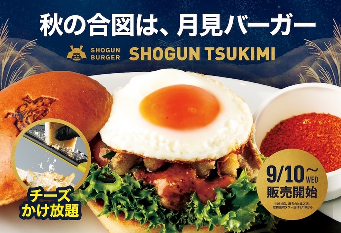 9/10〜『SHOGUN BURGER』に月見バーガー新登場!チーズかけ放題キャンペーンも開催中