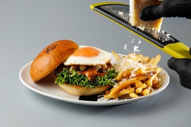 追加料金300円(税込)で、1000年以上の歴史をもつ“イタリアチーズの王様”をバーガーやサイドメニューに好きなだけ削りかけてもらえる、チーズ好き必見のサービスです。