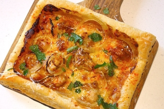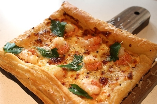 味のコントラストに加え、プリプリの海老とサクサクのパイ生地の食感の違いも楽しいですよ。