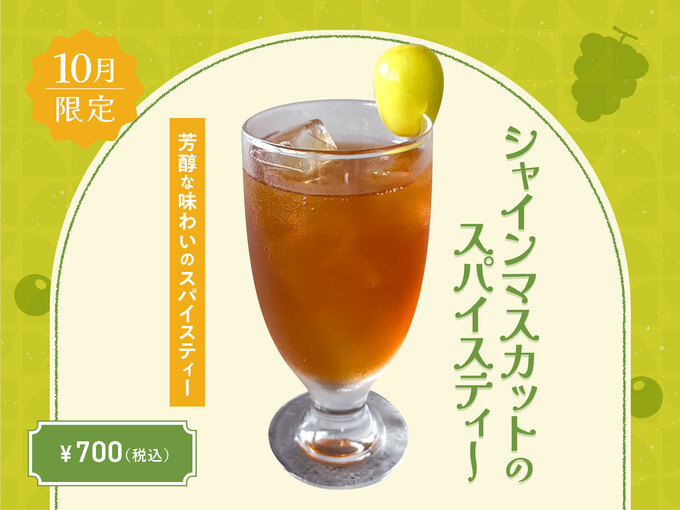 さらに、カレーに加え、限定メニューとして、「シャインマスカットのスパイスティー」700円(税込)も登場します。