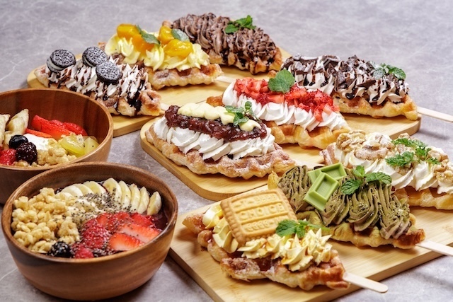 『mari mari』では、クロッフルにお好みのクリームやソースをトッピングして、自分だけの「クロッフル」を作れます。