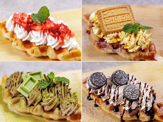 外はサクサク・中はもちもち食感の「クロッフル」にお好みのクリームやソースをトッピングして、自分だけの「クロッフル」を作れます。