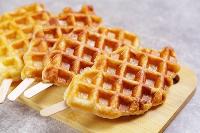 「クロッフル」とは、クロワッサン生地をワッフルメーカーで焼き上げた、外はサクサク・中はもちもち食感のスイーツ。