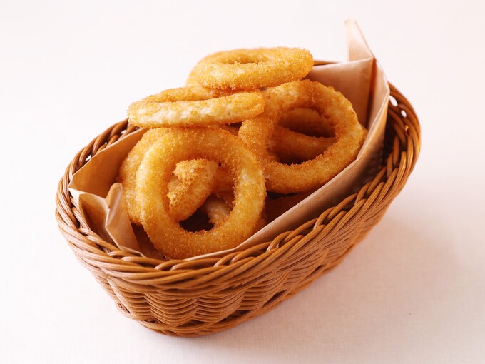 タマネギの甘みと軽く味付けした衣の塩気がバランス良く、パン粉をつけて揚げることでサクッとした食感が楽しめるサイドメニューです。