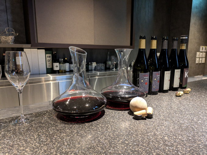 芳醇な香りがふわっと開き、デキャンタージュ前には強く感じた渋みも角が取れてまろやかに変化。豊かな味わいが引き出されていました。