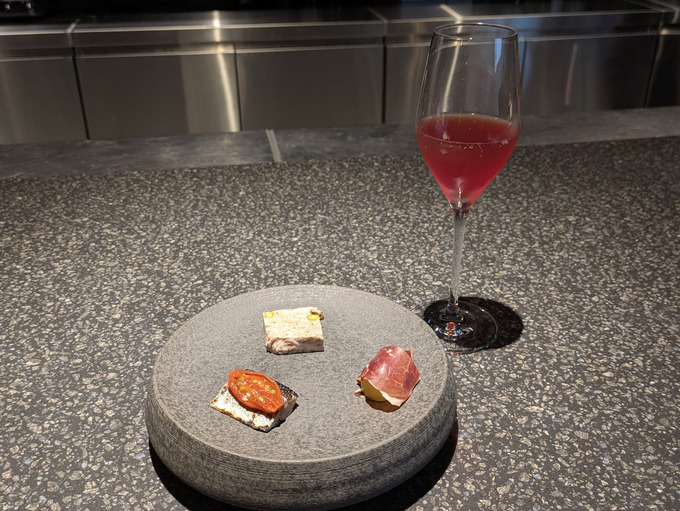 「本日のアミューズ3種」では、安曇野産のシャインマスカットが登場しました。