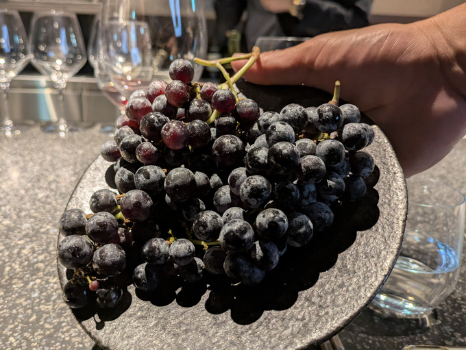 また、「サプライズで用意したので、ぜひ食べてみてください」と登場したのは、ルミリュウワイナリーで栽培しているブドウ。