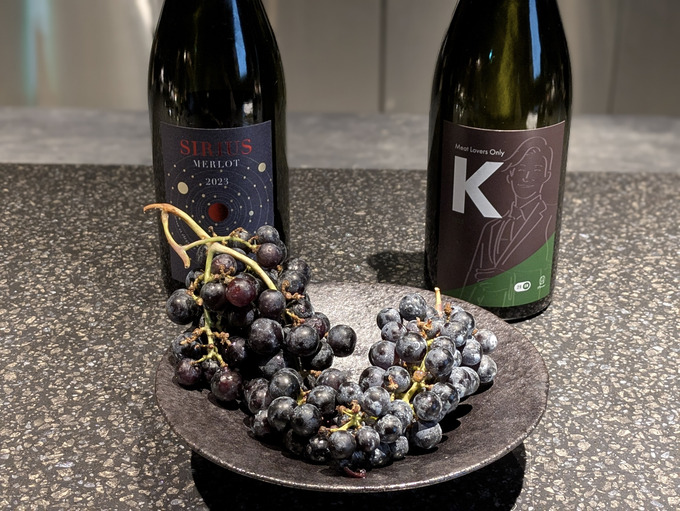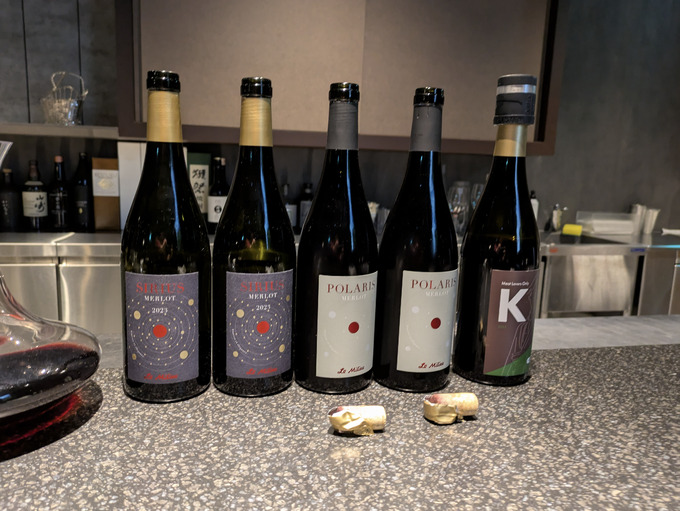 フラッグシップの「シリウスメルロー」はデキャンタージュしたものと飲み比べ