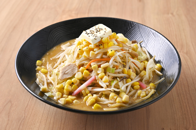 濃厚な特製味噌スープと香り高いバターのコクが溶け込み、たっぷりのシャキシャキ野菜と甘味のあるコーンが入っています。