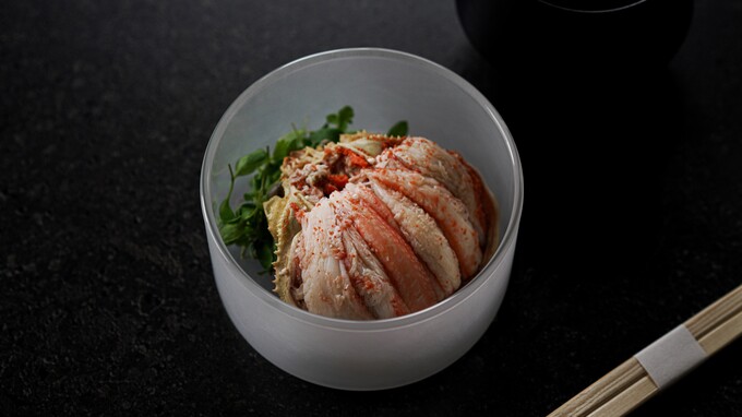 資源保護のため漁期が約2ヶ月と短く、希少価値が高いとされる「香箱蟹」は“冬の味覚の女王”とも称される贅沢なひと品。