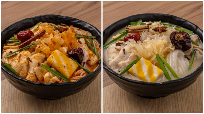 火鍋をイメージした冬限定の「薬膳火鍋米線」は、「赤」と「白」の2種のスープから選べ、寒い冬にぴったりです。
