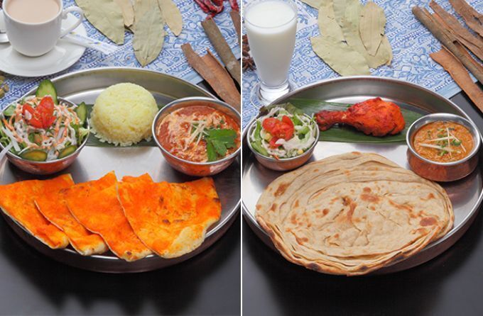 左「チキンシャシュリックセット」2,290円、右「ラッチャパラタセット」1,990円(各税込)