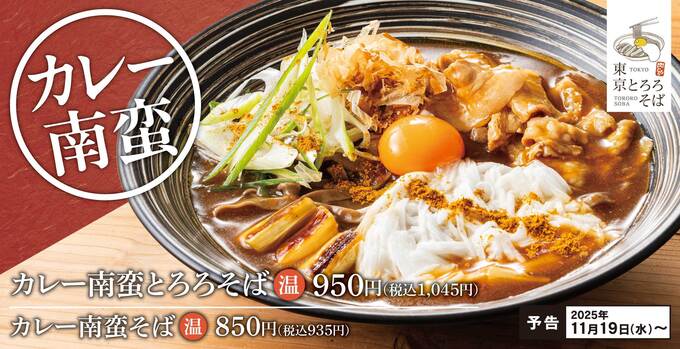 とろろそば専門店『東京とろろそば』では、2025年11月19日(水)より期間限定で「カレー南蛮とろろそば」を販売開始します。