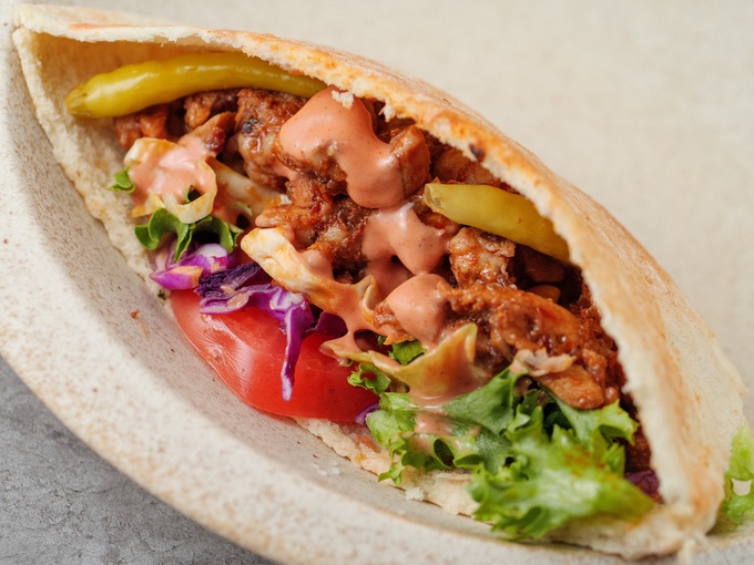注目は、日本でも人気のトルコ料理「ドネルケバブ」。特製ソースに漬け込んでグリルしたジューシーなチキンやビーフを、新鮮な野菜とともにふわふわのピタパンにサンドしたひと品です。