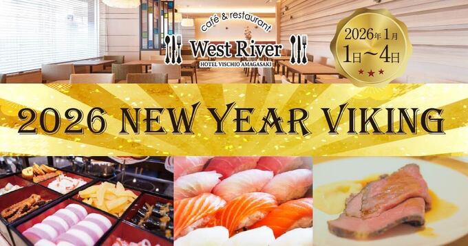 2026年1月1日(木)〜1月4日(日)までの期間限定!兵庫・尼崎の『ホテルヴィスキオ尼崎』内のカフェ&レストラン『ウエストリバー』では、元日のランチより「2026 NEW YEAR VIKING」をスタートします!