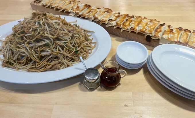 1キロ超えの特大焼きそば&餃子24個『バソキ屋』