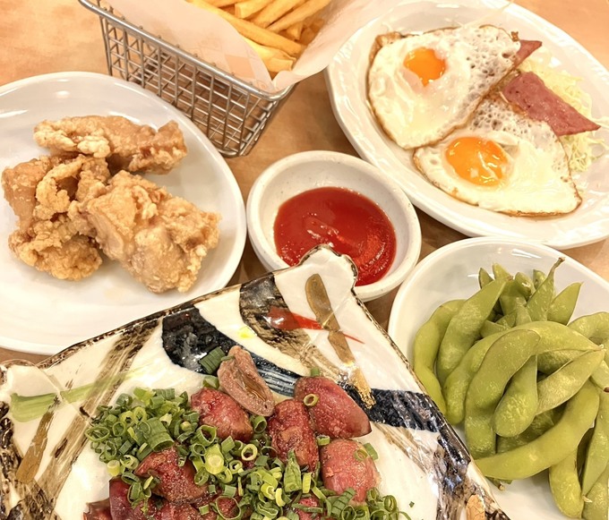 素材の旨味が光る「新鮮とろレバー炙り」や「雲仙高原ハムエッグ」に加え、枝豆や唐揚げ、ポテトなど、“つい頼みたくなる”ものばかり。
