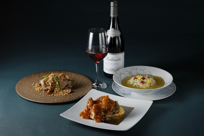 「タラバ蟹爪の黒豆ソース掛け」は濃厚な旨みを引き立て、「ズワイ蟹のX.O醬乗せシーズニング醬油添え」は香り高く仕上げられています。
