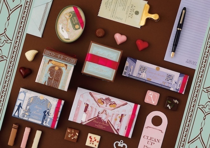 ルームキーをイメージした「ブシェショコラ」や、ホテルの廊下を行き交う人々を描いた「キャレショコラ」など、ストーリー性のあるパッケージが魅力です。