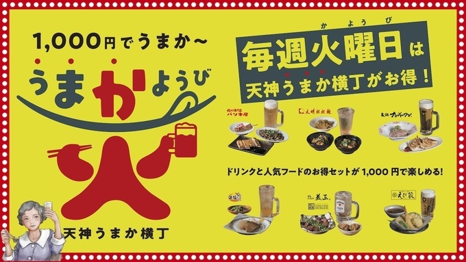 火曜日の夜は『天神うまか横丁』でお得に楽しもう!
