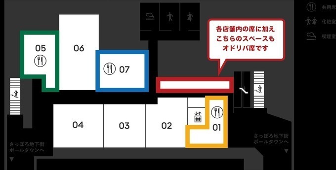 『ODORiBA/大通バル』内には、「オドリバ席」と呼ばれる共通席を用意。